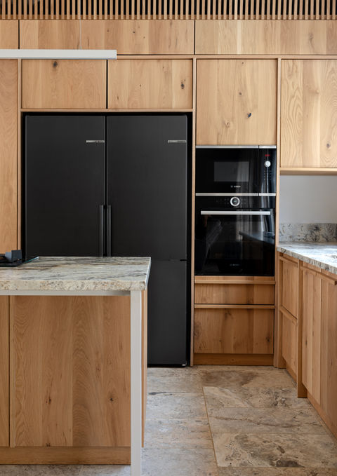 מטבח "סטוקהולם" נולד מתוך אהבה לחומר הגולמי וליופי שבפשטות. חזיתות עץ אלון מלא, בגימור טבעי שמבליט כל סיב עץ וכל עיניים קטנות שצמחו לאורך השנים.