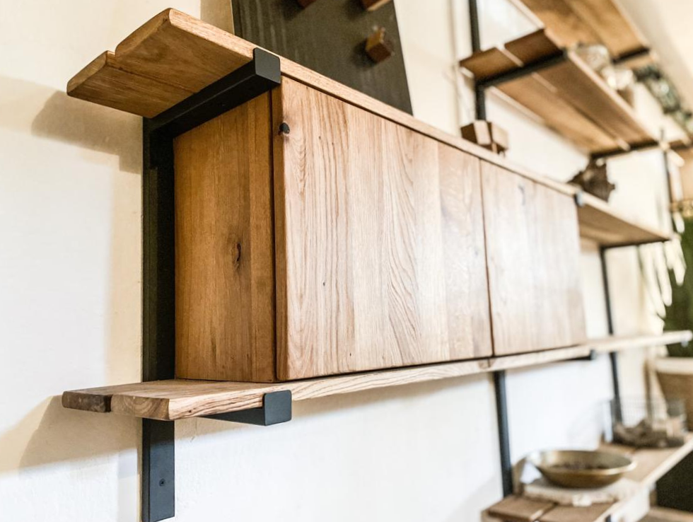 ניצבי ברזל ומדפי אלון מלא בעובי 2 ס"מ